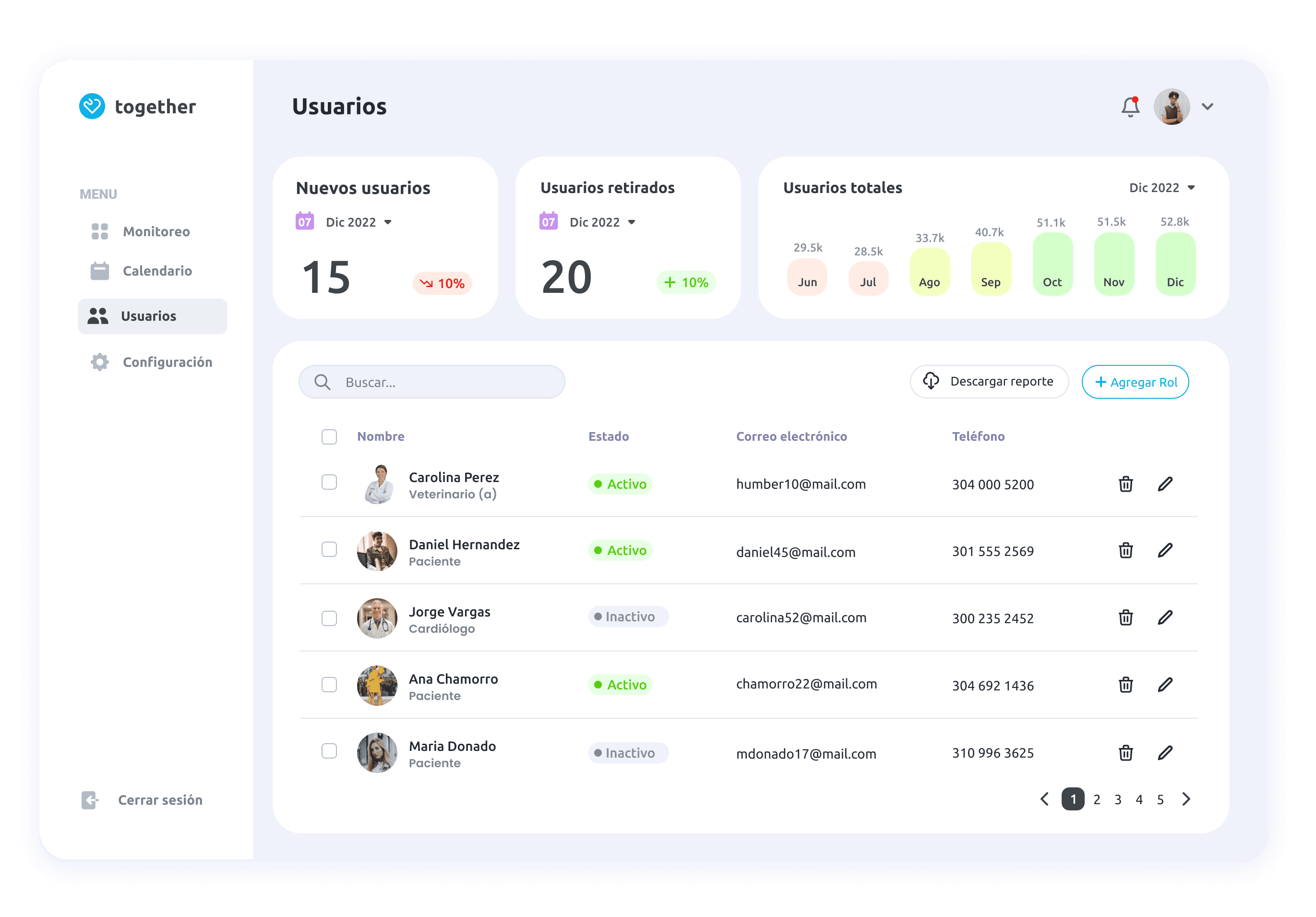 Permite a los administradores de la plataforma visualizar la información detallada sobre los pacientes y los profesionales de la salud que utilizan la plataforma.