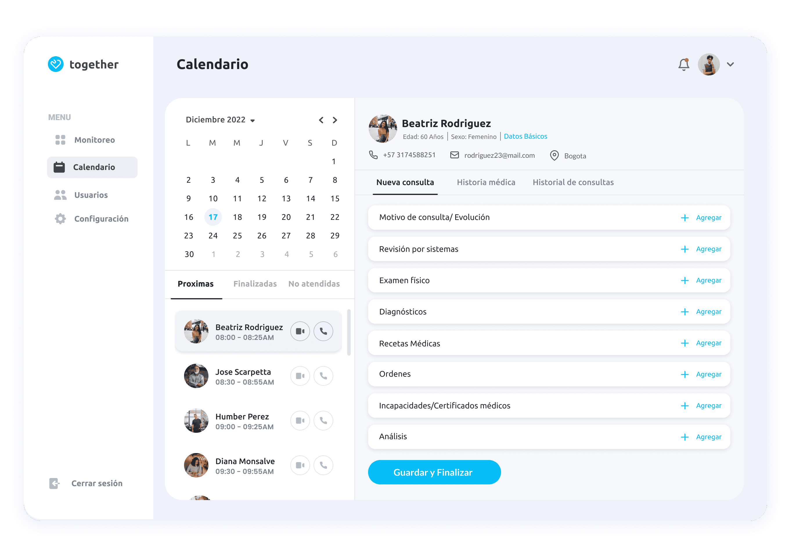 Realizar consultas médicas virtuales en tiempo real a través de videoconferencias o chats en vivo.
