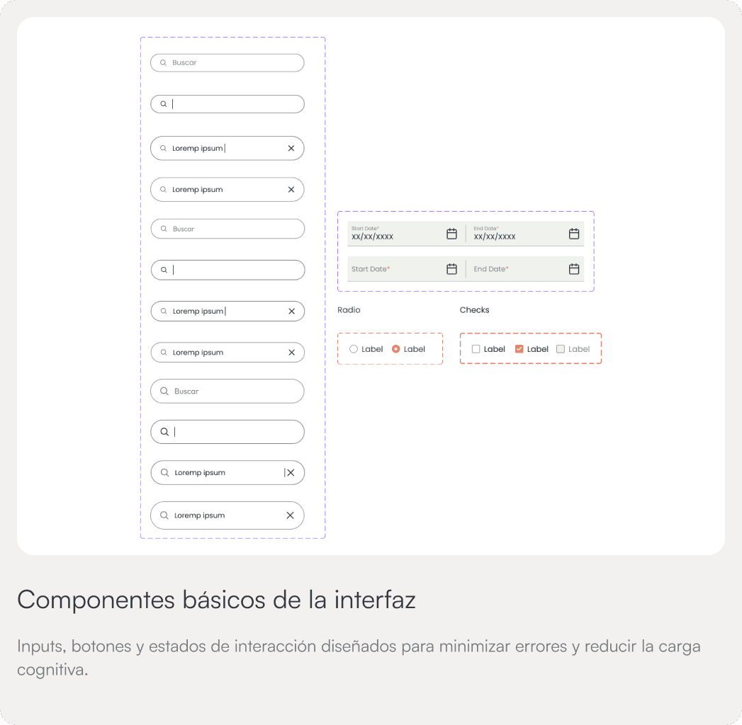 Para asegurar un crecimiento acelerado y una implementación técnica sin errores, construimos un Sistema de Diseño básico. Esto garantiza que cada interacción en Evenda sea consistente, reduciendo la deuda técnica y permitiendo que el producto evolucione sin perder su identidad visual.
